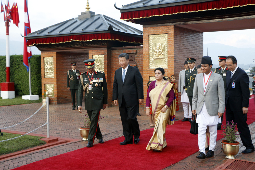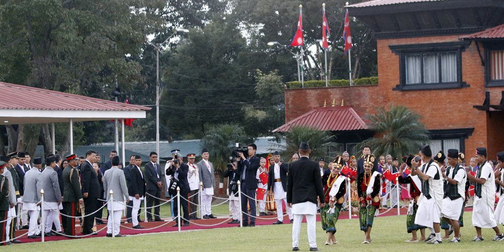 नेपालको दुई दिने राजकीय भ्रमणमा काठमाडौँ आइपुगेका चिनियाँ राष्ट्रपति सी चिनफिङलाई त्रिभुवन अन्तर्राष्ट्रिय विमानस्थलमै गार्ड अफ अनर प्रदान गरिएको छ । सीलाई सरकारका तर्फबाट नेपाली सेनाले सम्मानस्वरुप ‘गार्ड अफ अनर’ प्रदान गरेको हो । सीको सम्मानमा नेपाली सेनाले २१ तोपको सलामी समेत दिएको छ ।