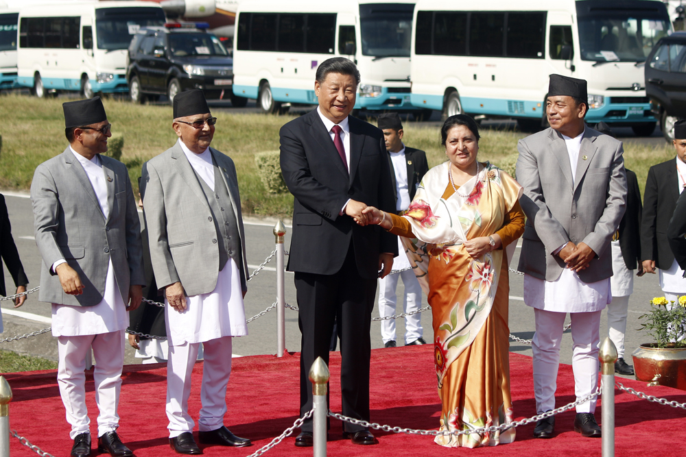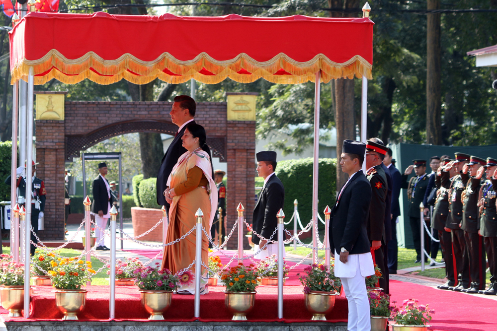 चिनियाँ विशिष्ट पाहुनाको आवागमन हुने सडकमा ठाउँठाउँमा ‘सर्वोच्च शिखर सगरमाथाजस्तै उँचो नेपाल चीन मैत्री’, ‘नेपाल चीन मित्रता विशाल, गहन र अटल’, ‘बुद्ध र सगरमाथाको देशमा हार्दिक स्वागत छ’ लेखिएका ब्यानर र स्वागतद्वार बनाइएका थिए । राष्ट्रपति विद्यादेवी भण्डारीको मैत्रीपूर्ण निमन्त्रणामा जनवादी गणतन्त्र चीनका राष्ट्रपति सी शनिबारदेखि दुईदिने राजकीय भ्रमणमा यहाँ आउनुभएको हो ।