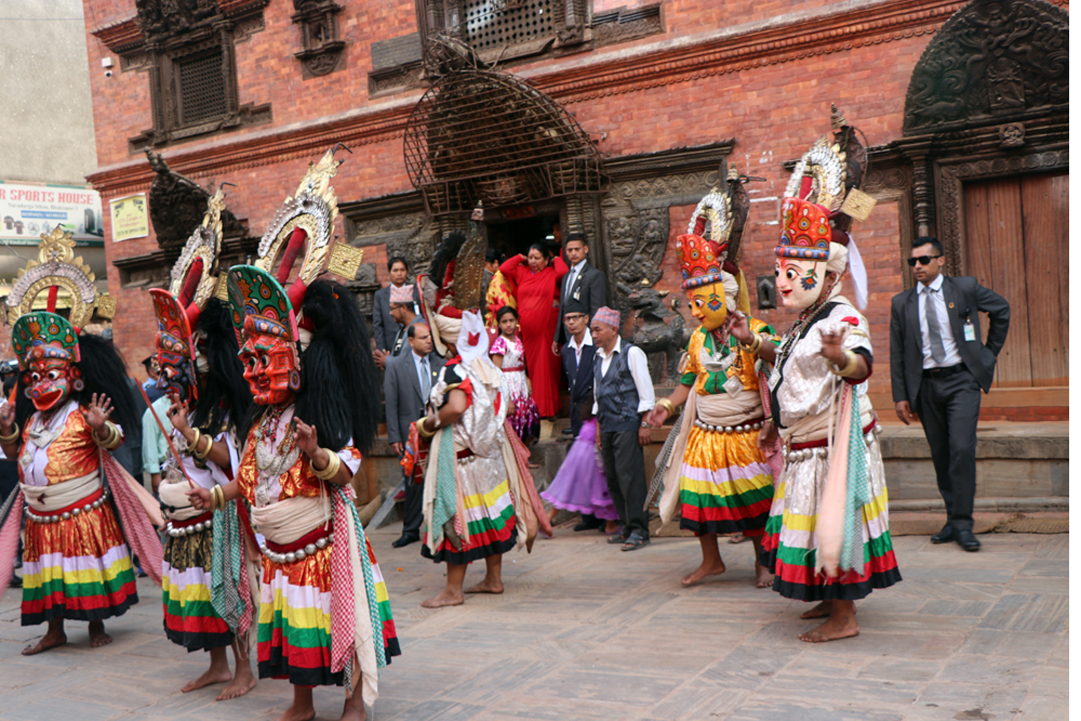 उक्त अवसरमा राष्ट्रपति भण्डारीले नवदुर्गा देवगणका विभिन्न मूर्तिको समेत अवलोकन गरी दर्शन गर्नुभएको थियो । विगत वर्षहरुमा दर्शन गरेर प्रसाद ग्रहण गरी फर्कने गरे पनि यसवर्ष भने राष्ट्रपति भण्डारीले नवदुर्गा नाचसमेत अवलोकन गर्नुभएको छ । राष्ट्रपति समक्ष नवदुर्गा नाचअन्तर्गत देवगणहरु श्याम वनमालाले गणेश, अनिल वनमालाले ब्रम्हायणी, मङ्गलाल वनमालाले महेश्वरी, लक्ष्मीप्रसाद वनमालाले कुमारी र शिवकृष्ण वनमालाले भद्रकालीको नाच प्रदर्शन गर्नुभएको थियो । राष्ट्रपति भण्डारीले नवदुर्गाका पुजारी, नाइके र देवगणहरुलाई दक्षिणा दिनुभएको थियो ।
