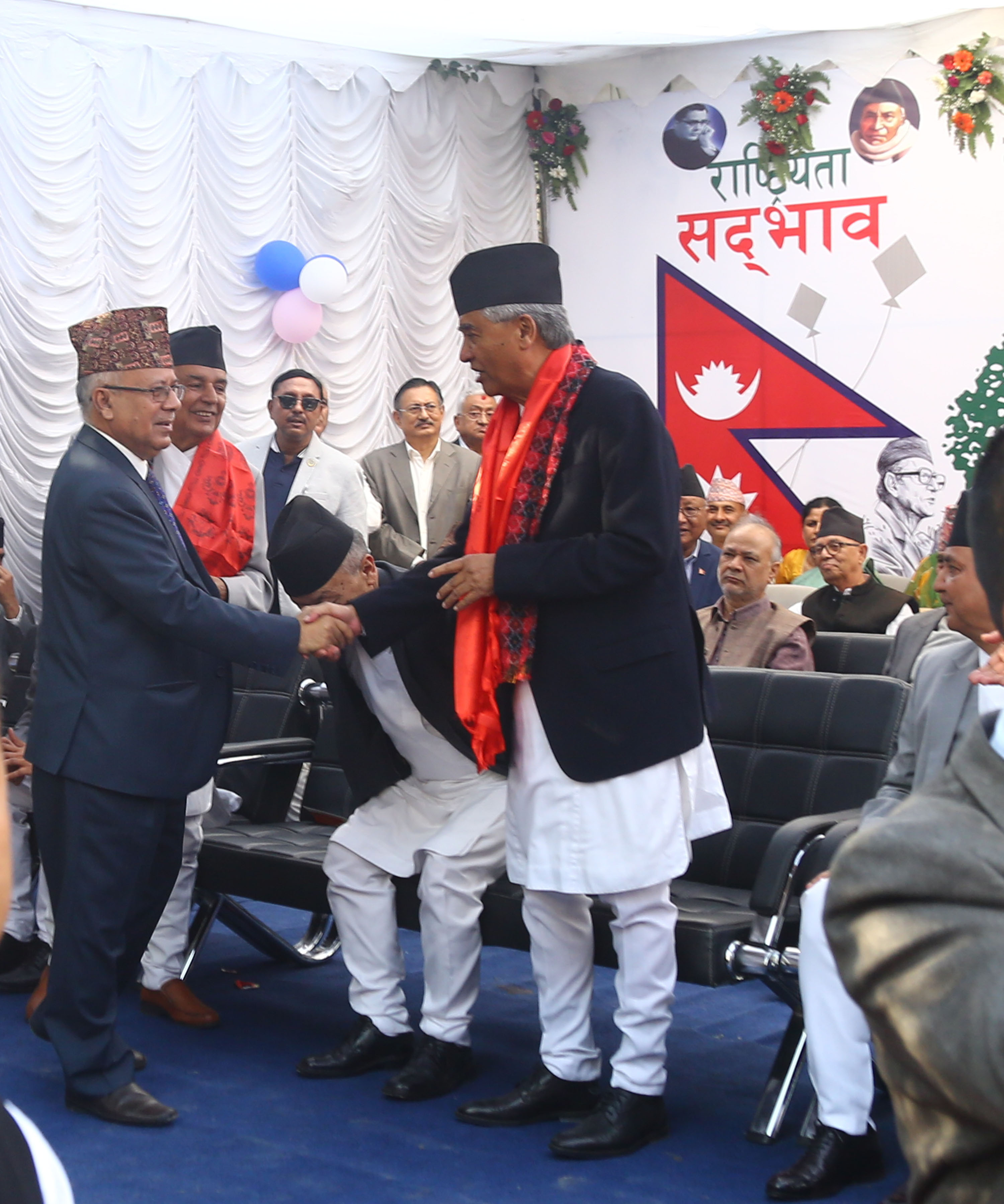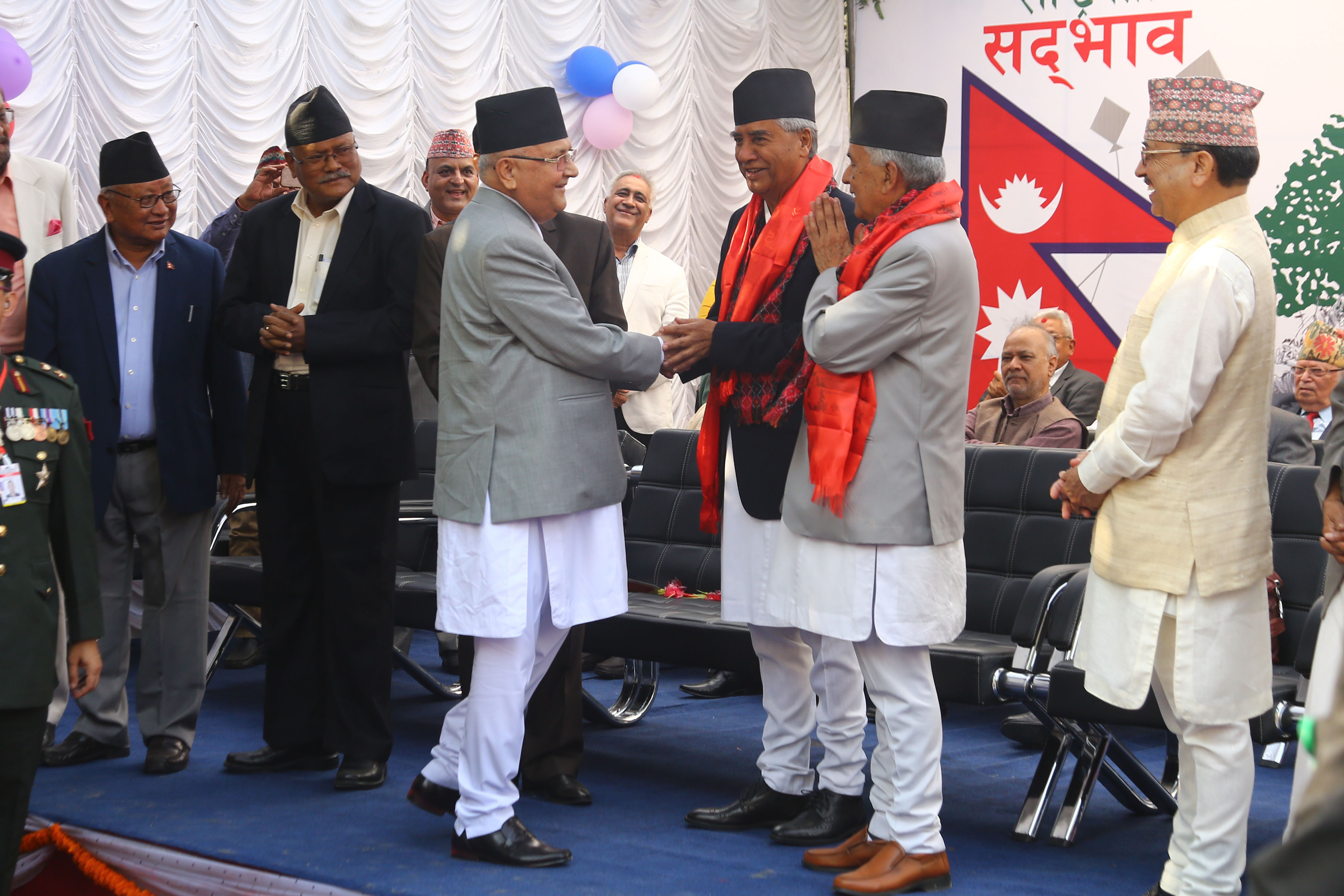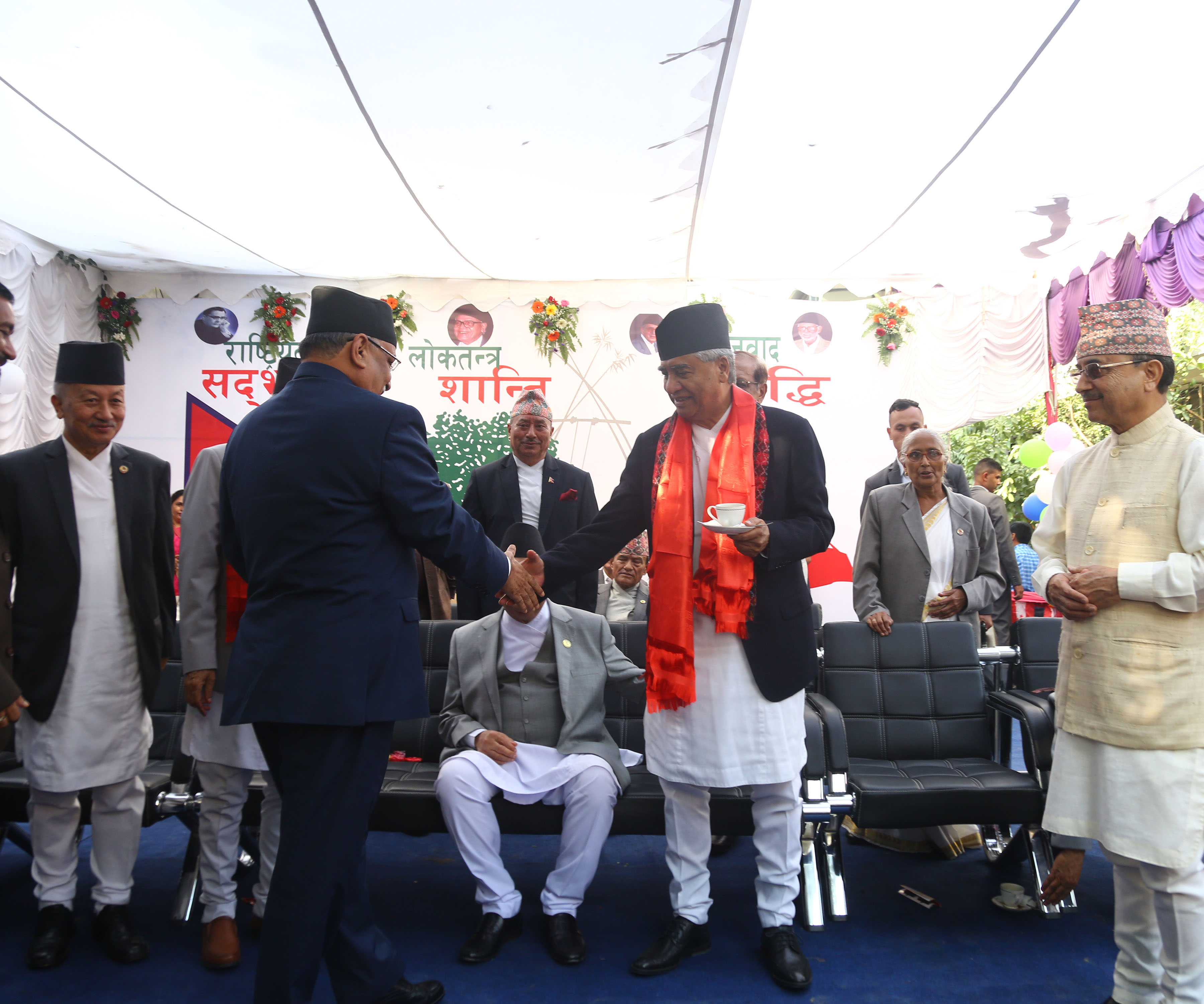 २६ असोज, काठमाडाैँ । प्रमुख प्रतिपक्षी दल नेपाली काङ्ग्रेसले आइतबार कोजाग्रत पूर्णिमाको अवसर पारेर चियापान समारोह तथा शुभकामना आदानप्रदान कार्यक्रम सम्पन्न गरेको छ । कार्यक्रममा आमन्त्रण गरिएका अतिथिहरुलाई पार्टी सभापति शेरबहादुर देउवा, वरिष्ठ नेता रामचन्द्र पौडेल, उपसभापतिद्वय विमलेन्द्र निधि र विजयकुमार गच्छदार, महामन्त्रीद्वय डा शशाङ्क कोइराला र पूर्णबहादुर खड्का, कोषाध्यक्ष सीतादेवी यादव, सहमहामन्त्री डा प्रकाशशरण महतलगायतका नेताले स्वागत गरेका थिए । कार्यक्रम दिउँसो १ बजेदेखि अपराह्न ५ बजेसम्म आयोजना गरिएको थियो ।
