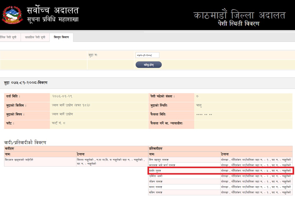 वीरध्वज खड्काको जाहेरीले २९ वैशाख ०७६ मा काठमाडौँ जिल्ला अदालतमा सांसद गुरुङविरुद्ध ज्यान मार्ने उद्योग मुद्दा दर्ता भएको थियो । नेकपाले मन्त्रिपरिषद् हेरफेरको क्रममा मन्त्री बनाउने तयारी गरेका गुरूङको विरूद्धमा पक्राउ पुर्जी जारी भएपछि शीर्ष नेताहरू भने अचम्मित बनेका छन । कतिपयले यसमा पूर्वमाअोवादीको खेल रहेको बताउने गरेका छन । दोलखामा पूर्व एमाले र पूर्व माअोवादीको बीचमा व्यापक कटुता रहेको थियो ।