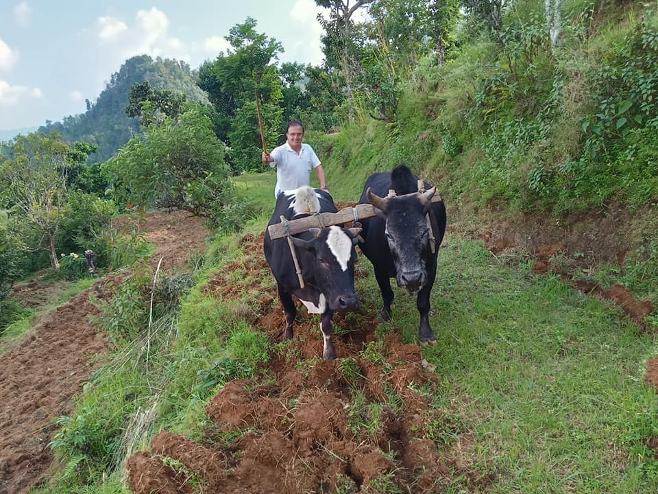 नेकपाका नेता एवं पूर्वमन्त्री त्रिलोचन ढकाल २३ वर्षदेखिको बाँझो बारीमा आफैँ हली बनेर पसे (फोटोफिचर)