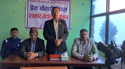 २३ चैत, काठमाडाैँ । प्रधानमन्त्री केपी शर्मा ओलीका प्रेस सल्लाहकार सूर्य थापासँग पत्रकार ऋषि धमलाले