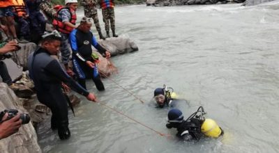 कर्णालीमा वेपत्ता भएका १० जनाको खोजी गर्दै सशस्त्र प्रहरीको गोताखोर